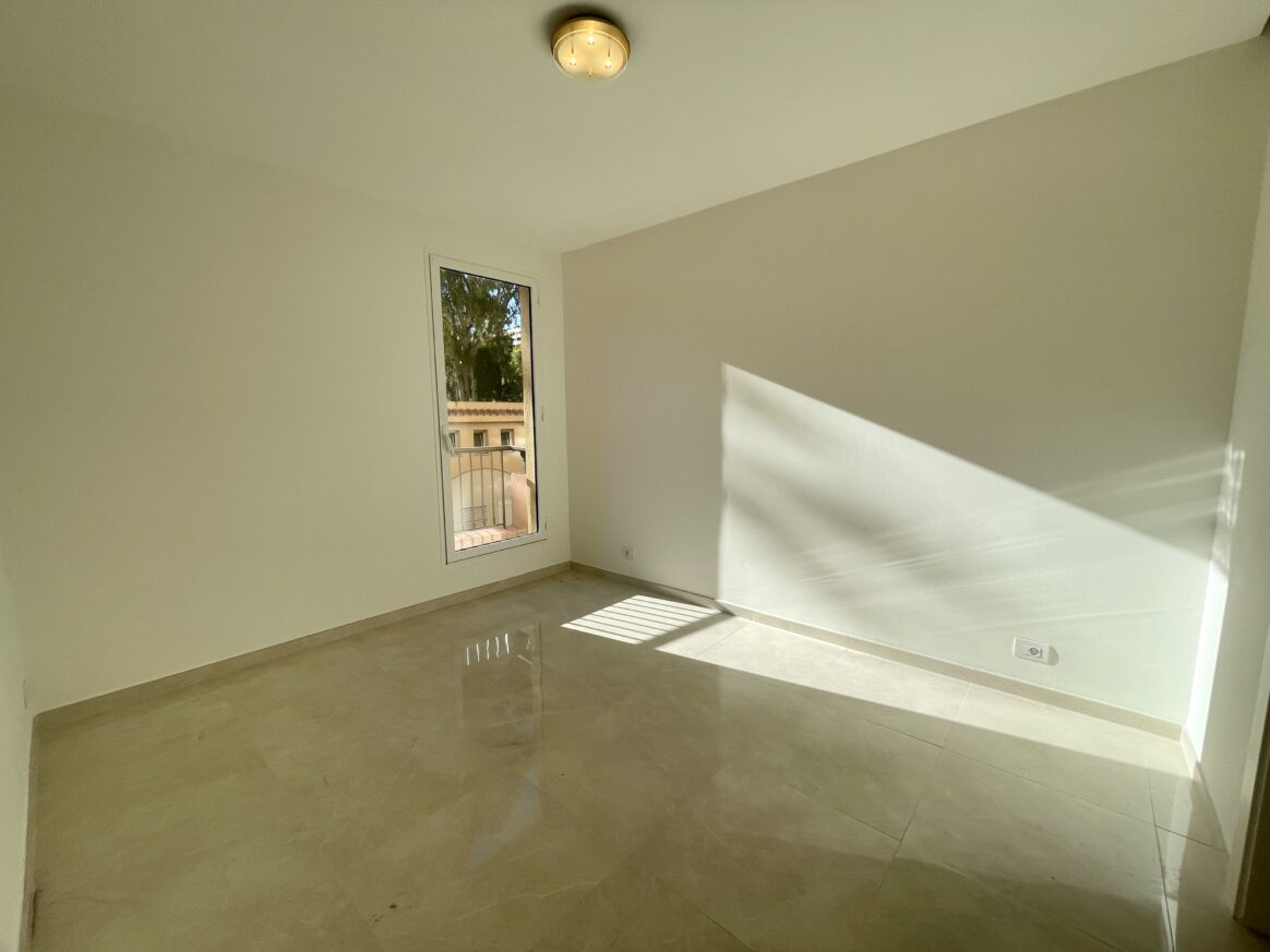 This spacious and fully renovated one-bedroom apartment offers a well-designed layout featuring an entrance hall with a guest toilet, a bright living room opening onto an airy terrace, and a separate, fully equipped kitchen with a large window. The bedroom benefits from its own balcony, and the apartment includes a large, comfortable bathroom.