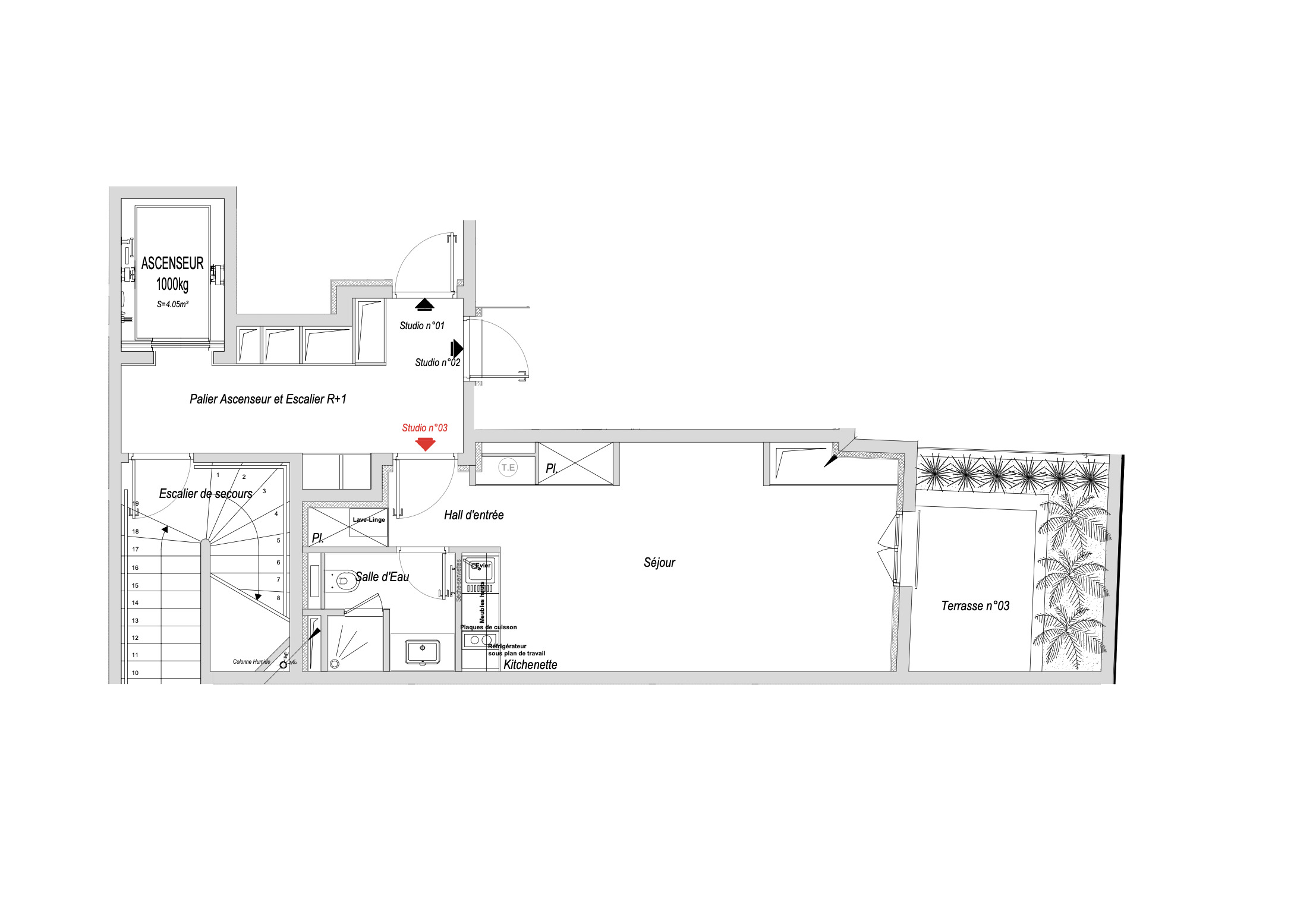 Kitchen of a studio in Villa Palazzino in Monaco